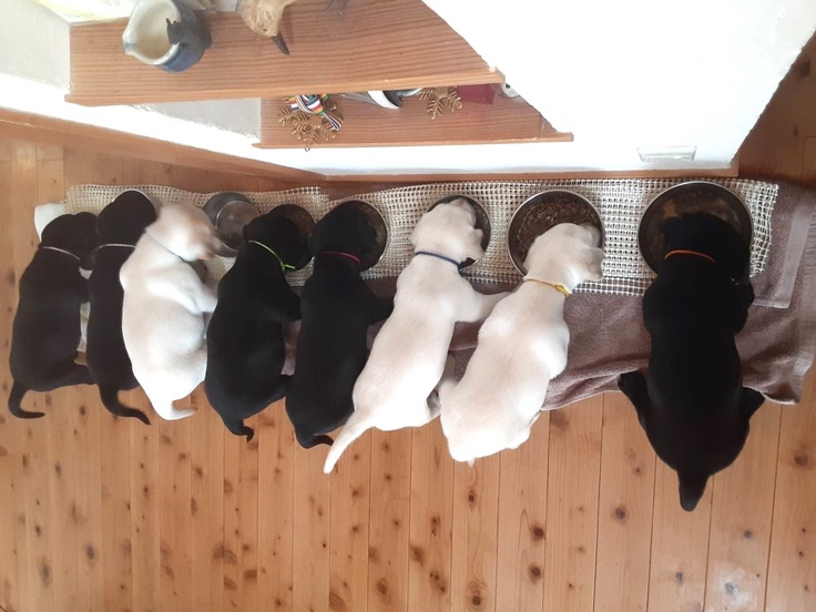 最初はドロドロに溶かしたドッグフードからはじめて、パピーボランティアのお宅に委託するまでに固形のフードへと切り替えます。食事回数は朝、昼、夕と3回食へ。