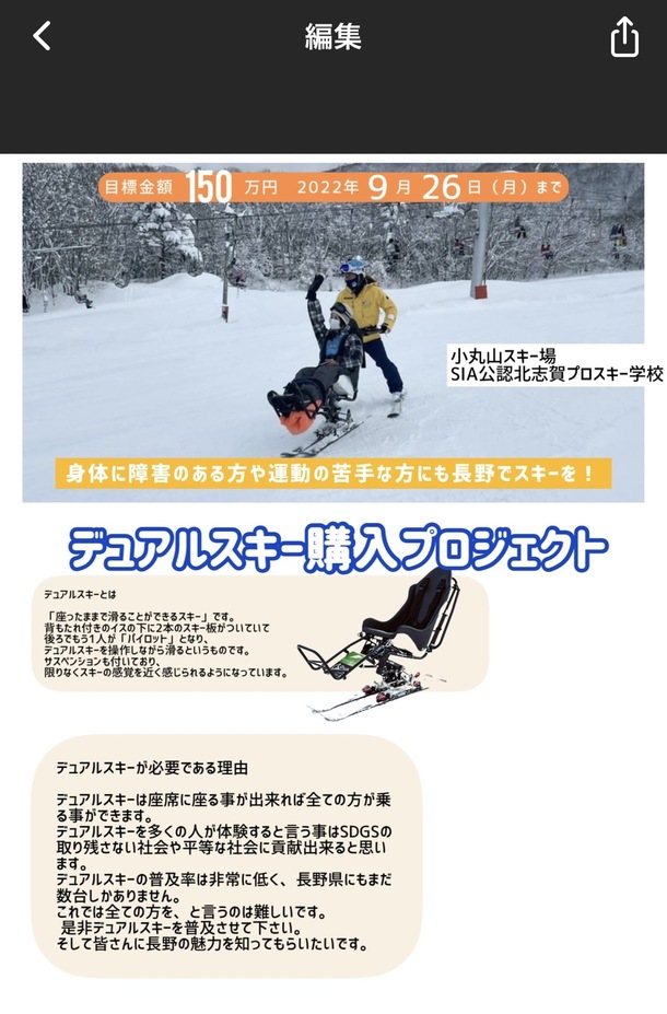 誰でもスノーフィールドに出れるように、また体験が出来るように、プロジェクトをみた800人の方に最後のお願いいたします🙇