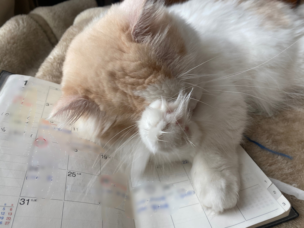 こないだ仕事の準備をしていてスケジュール帳がないことに気づいたのですが、エルが盗んで遊んでいました😆