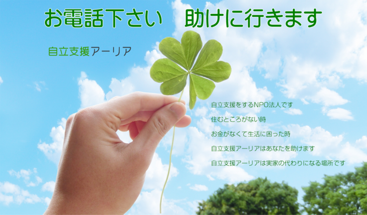 NPO法人自立支援アーリアです。現代の「駆け込み寺」として困っている方々へ即日から暮らせるシェルターを24時間提供しております。