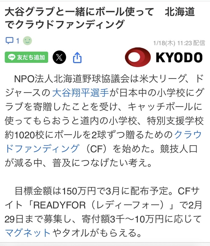 18日、共同通信社にクラウドファンディングの記事が掲載されました。