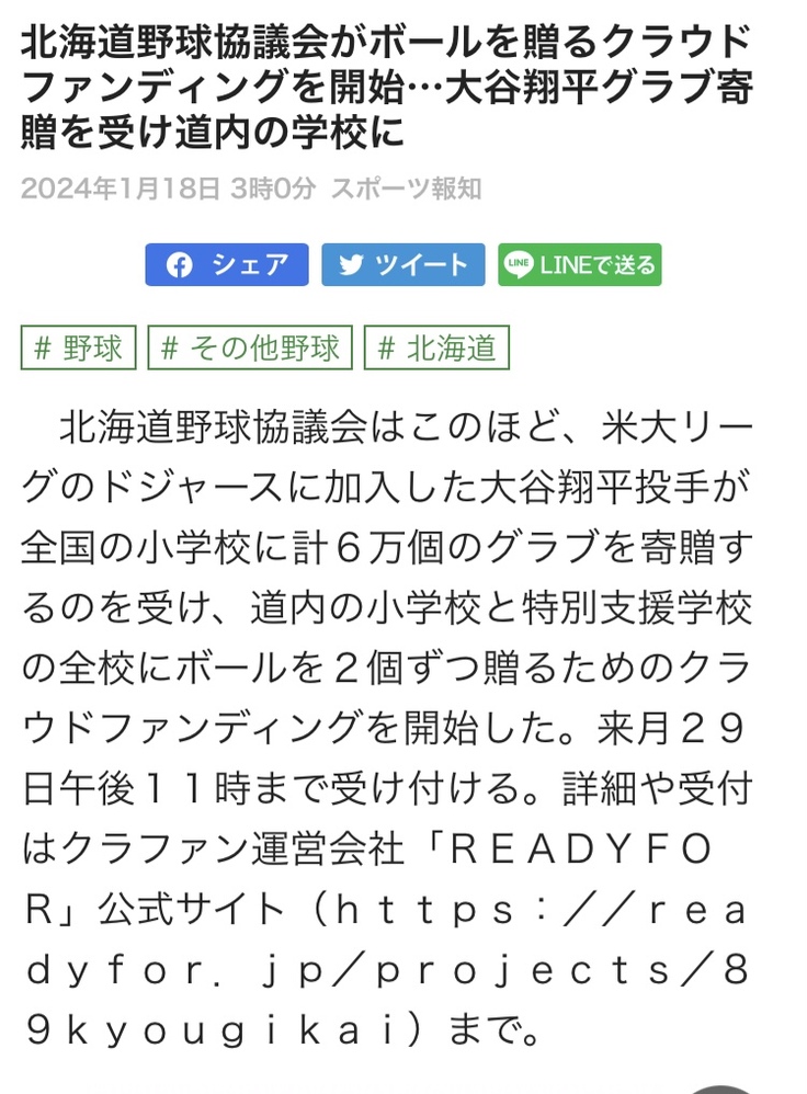 スポーツ報知様にCFの記事が掲載されました