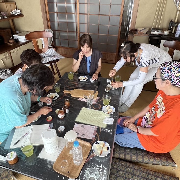 (杜仲茶飲み比べ、ジャムの試食会風景)