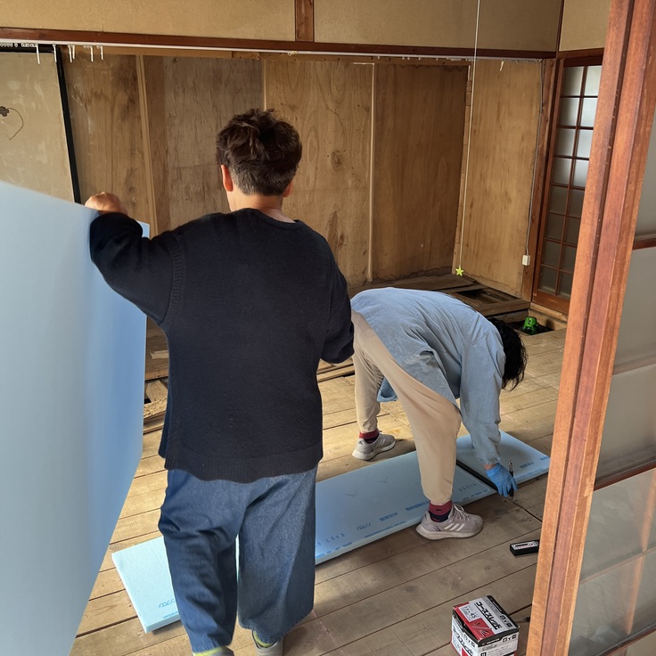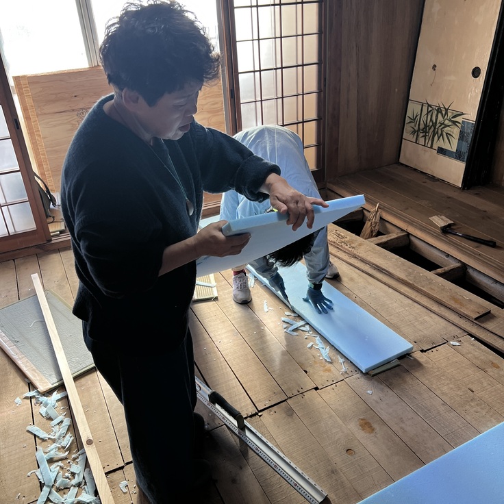 (8畳フラワーズのさとみさん、恵里さんも断熱材をカット)