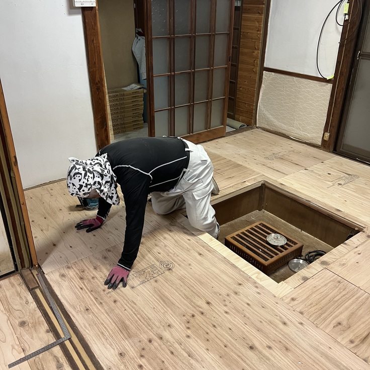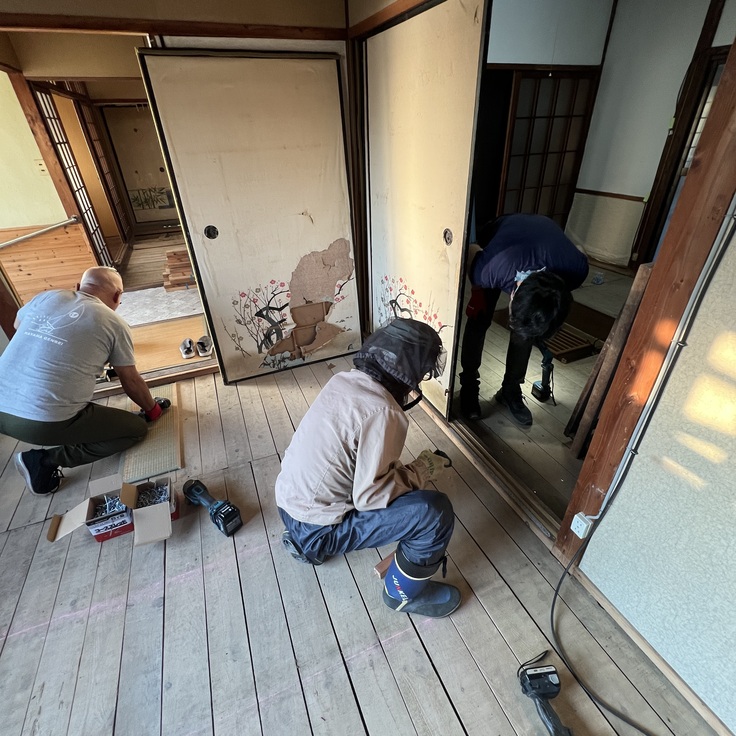 11月5日より、自分たちで床の修繕(畳からフロアタイルへ)を進めています。