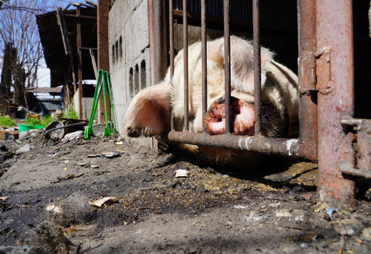 ある廃業間近の養豚場で、飼育動物のネグレクト虐待を発見したのは、地元の犬猫保護活動家でした。
