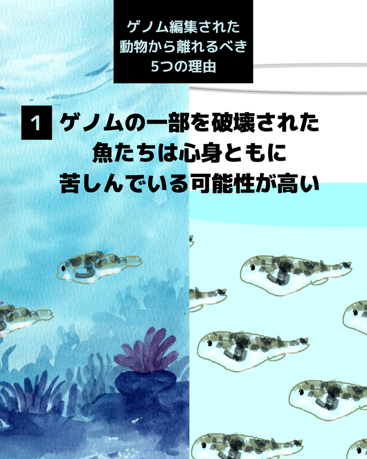 ゲノム編集された魚は、精神、身体ともに、慢性的に病んでいる状態であるということだ。