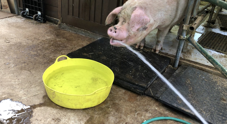 今日もともちゃんは、出口につま先立つように立って(本当は少し出ている)、スタッフに流れるお水をちょうだいと甘えてきました。そんな感情豊かなともちゃんにホースでお水を飲ませながら「ともちゃんの心の中に広がる世界を、おそと同様に広げることも、わたしたちスタッフの仕事だと思うのです。