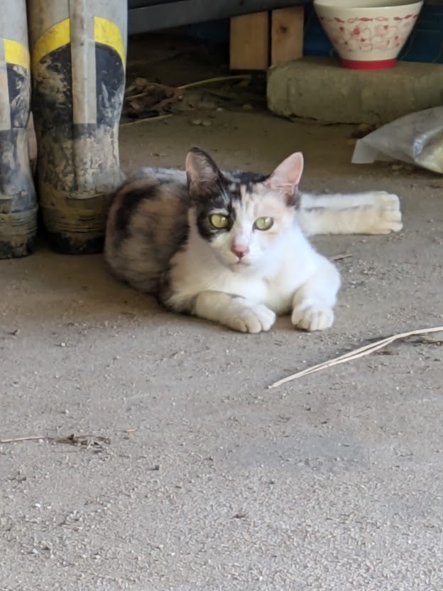 にゃんずの食べ残しの🍚にちょいタシし、外(=^・・^=)に🍚