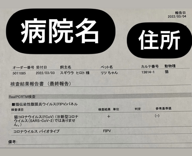初めに診断をして頂いた獣医さんからは、「ステロイド剤を出すことしかできないし、その薬も気持ち程度で近いうちに亡くなるでしょう。」と余命宣告まで受けました。その言葉を聞いて、一瞬で頭が真っ白になりました。どうにかして助ける事はできないか聞いたところ、数年前に海外で開発された薬がFIPの猫にとても効果があり高確率で症状の緩和や完治の症例があがっていると教えて頂きました。