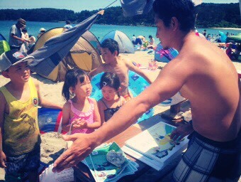 運よく天候に恵まれまして、海で遊ぶのには最高に気持ちいいコンディションでした。様々なイベントが重なったため子供たちの人数が予測より少なかったですが、地元、そして本土から来た子供たち、親御さんたちと触れ合い、ワークショップを行うことができました。