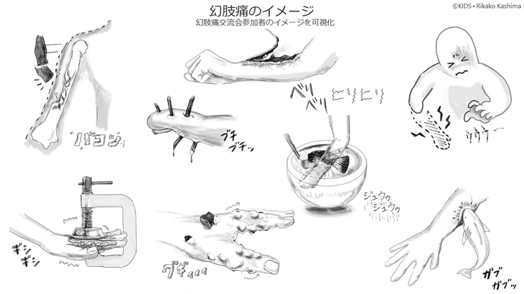 ▲幻肢痛交流会メンバーの感じている痛みをイラストにしてみました。
