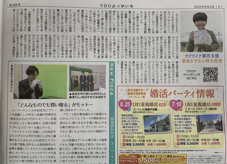 小さいころから、ユキちゃんのボランティア精神を見てきて、「人の為に何かできないか」と吉崎海岸清掃でのウクライナ難民プロジェクトの募金活動と四日市教会での募金活動にも協力してくれています。