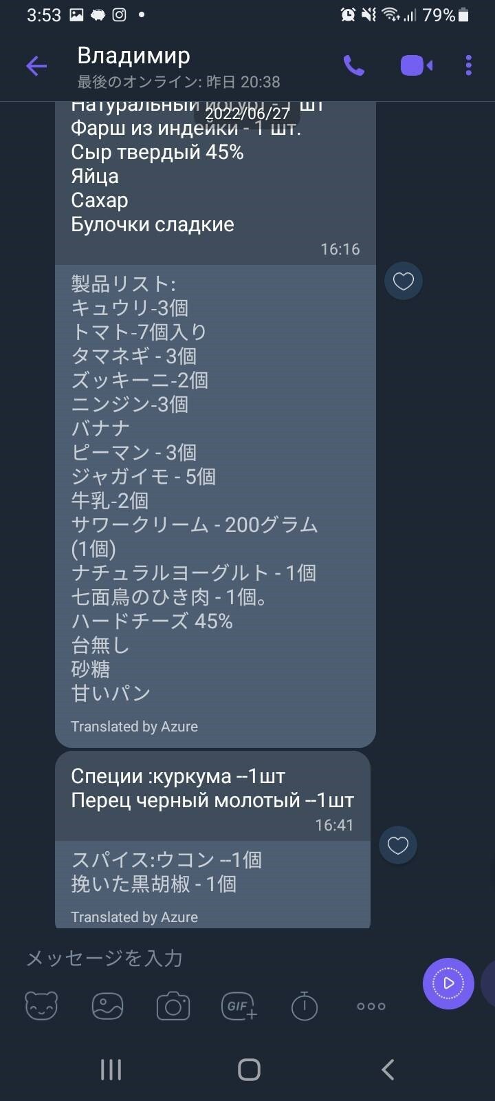 (私と夫は、ウクライナ語が分からないため、主に Viber とグーグル翻訳で会話をしています。)