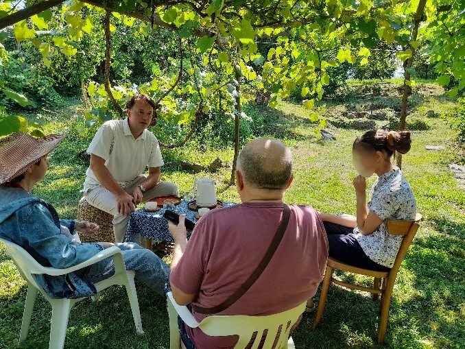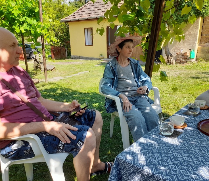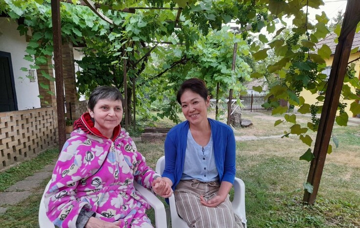 私たちは、心のサポートとして、2人で部屋に閉じこもらないよう、一日に2回、ゆっくり時間をかけて庭で会話をしたり、お部屋でお茶を飲みながら、ウクライナのお住まいのドニプロの様子、家族、親戚との離れ離れの生活のお話、ウラジミールさんとルバさんの知人の話(爆弾が、頭上を通過して知人が精神的に参ってしまい、寝込んでしまったお話)など、いろいろな辛いお話など、私たにしてくれています。私たちは、聞いてあげることしかできませんが、ご夫婦の心に寄り添い、孤立しないように心掛けております