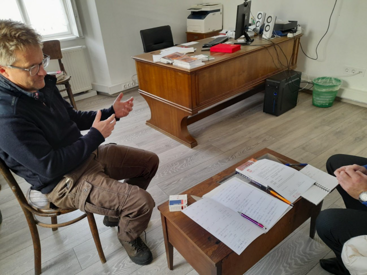 上記写真(カリタス支援団体の支部長室にて相談の様子)