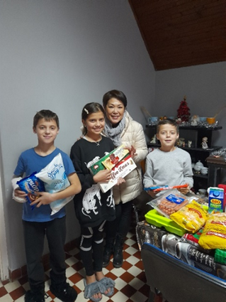 上記写真(ウクライナ難民の子どもたちと貧困の子どもへクリスマスチョコの