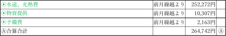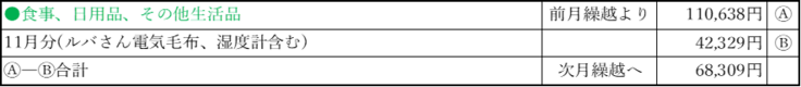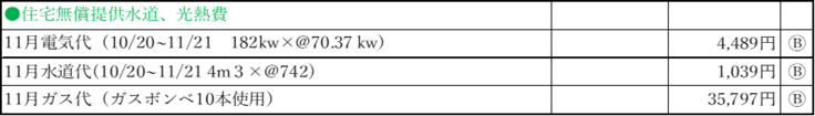 11月から光熱費、物資提供、予備費すべて合算して計上させていただきます。