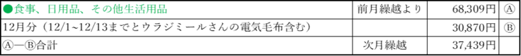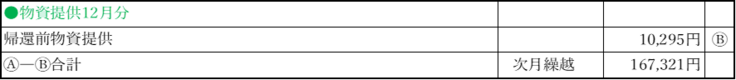住宅無償提供受け入れ支援明細表には、12 日帰還前日の物資提供は計上しておりません。 明細表作成し、11 日にサインをいただいた後の買い出しでしたのでご理解の程よろしくお 願いいたします。ご夫婦には、12 日の物資提供は口頭にてプロジェクトからの支援物資と お伝えしております。