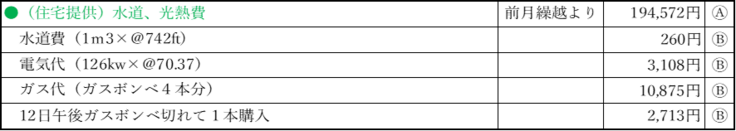(12 日のガスボンベ1本分は明細表には記載しておりません。ご理解の程よろしくお願い いたします。)