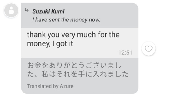 上記は、母子難民へ通信支援として受取証のお礼のメール(Viber にて)。
