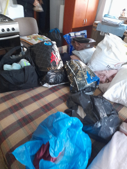 その他、部屋で使っていた消耗品など(トイレットペーパー、洗剤、調味料)など、生活 費としてご支援金で買ったものなどは、そのまますべて提供させていただきました。 この戦争の中、道中に何が起こるかわかりません。冬の厚手の毛布2枚も、道中寒いよう な時の為に、とそのままご夫婦へ提供させていただきました。