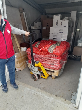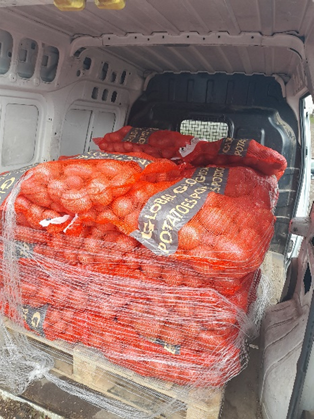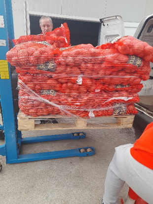 1月の物資提供として、ジャガイモを支援させていただきました。 カリタス支援団体まで ジャガイモを届けてくれる野菜屋がなかなか見つからず、市場の八百屋や比較的大きな八 百屋にも断られ苦労しましたが、私たちがいつも行く、家族で営んでいる小さな野菜屋さ んにダメもとで伺ったら、息子さんが協力してくれるとのことで、前日に市場で 510 キロ 用意していただき、無料でカリタス支援団体まで届けてくださいました。