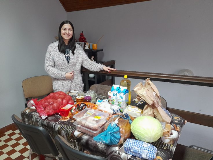 生活が大変でもいつも笑顔で迎えてくれるタニエさん。届けた日は、3人の子どもはまだ 学校から帰宅していませんでした。言葉(ハンガリー語)が分からないので、孤立しない ようにと月1回物資を届けながら、ウクライナに残した母の様子など聞いたり、子どもの 学校の様子など話をしています。