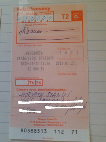 上記右:送金領収書(毎月郵便局から通信支援を送金しています。)