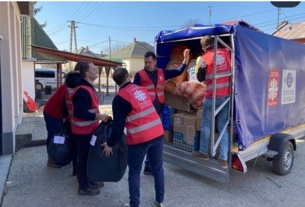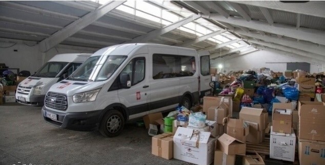 国境沿いと貧困地域への物資提供として、生活に必要な(主に小麦粉、パスタ)などの食料をカリタス支援団体へ届けました。