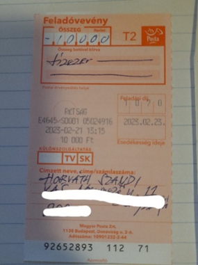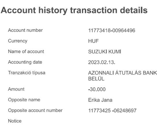 上記2月送金分(11,070Ft) 上記サンドラさんから最後のお礼のメール