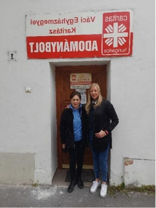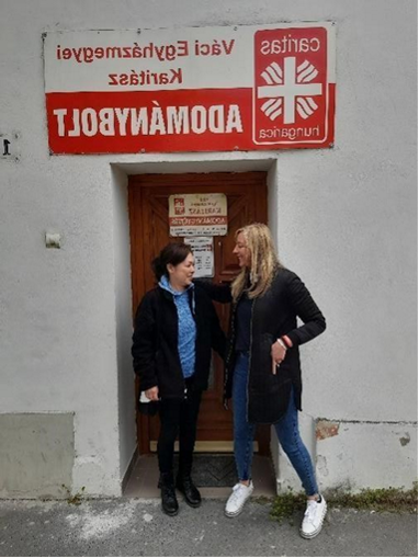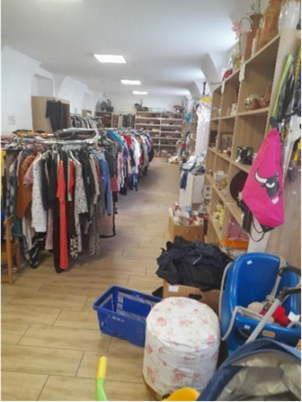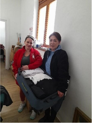 上記左写真(この日はショップにウクライナ難民担当のベアタさんがいました。)上記右 写真(カリタスショップスタッフ)カリタスショップのスタッフとベアタさんに、「ハン ガリー国内のウクライナ難民もしくはウクライナ貧困地域の子どもたちに提供してくださ い。」とお伝えし、上下合わせて41着支援させていただきました。(フリマで購入し、一 枚一枚アイロンをかけて寄付しました。)