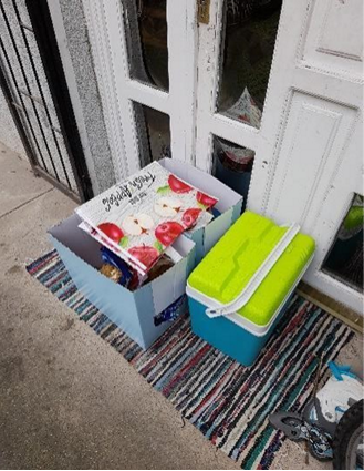 今月物資を届けた日、タニエさんが掃除の仕事が長引き、私は門でしばらく待っていたの ですが、仕事が長くかかると連絡を受け、食材を玄関口に置いてきました。