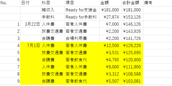 クラウドファンディングの使途の表が以下の通りになります。