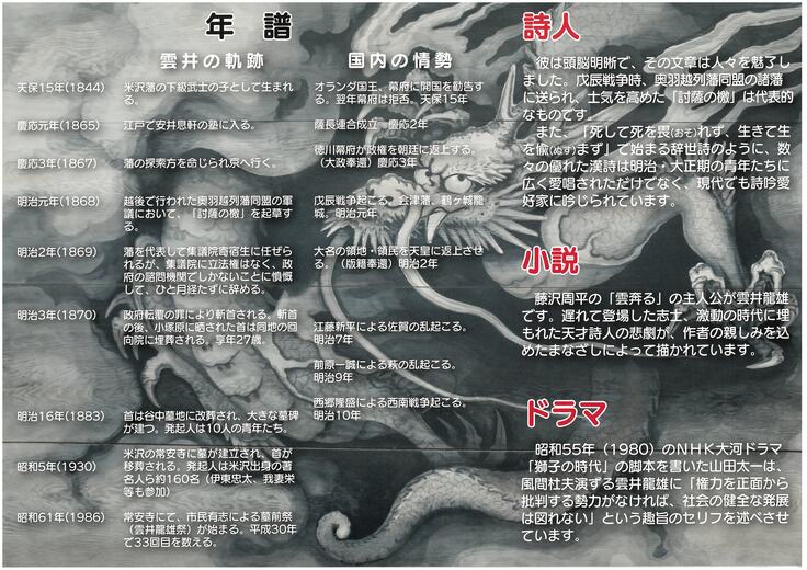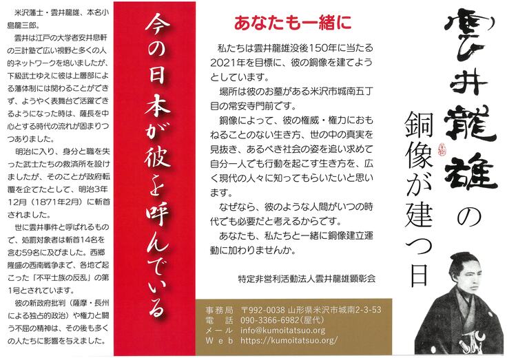 幕末の米沢藩士であり、稀代の詩人である雲井龍雄を知ってもらうスタートとしてパンフレットを作成しました