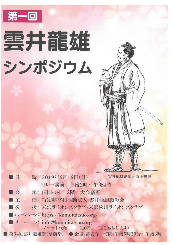 日本全国に彼のファンが沢山いるのですが地元での知名度が低いのが現状です。そこで私達が雲井龍雄を知ってもらうため「雲井龍雄顕彰会」を立ち上げました。