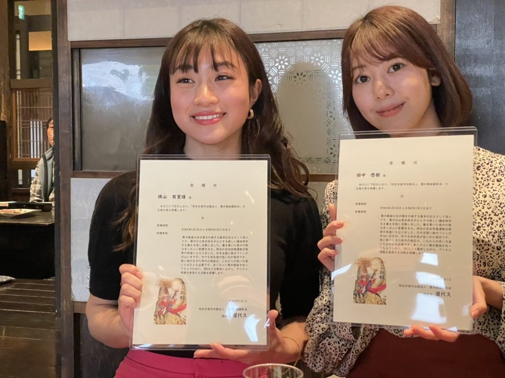 顕彰会広報大使を委嘱してます田中杏樹さん、アリスさんです。自分のSNSチャンネルで同時代の人に情報発信をお願いしています。
