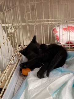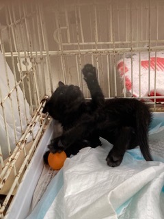 顔と体が傾いたまま外で生き抜いてきた子猫の保護です。やっとおなかも真ん丸になり遊べるようになりました