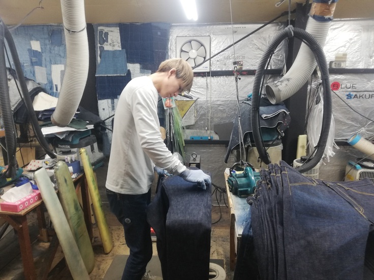 倉敷市児島WHOVAL本社 染色後の廃液 社員によるダメージ加工