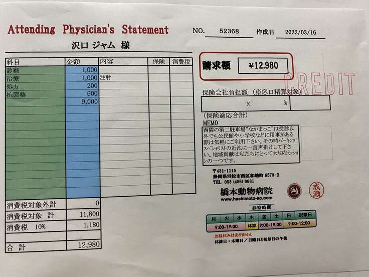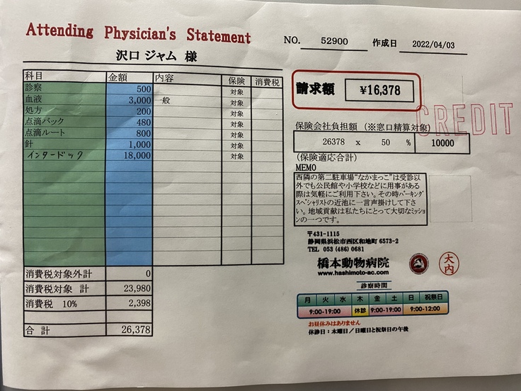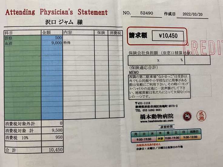 集まった支援金はすべてジャムの治療費に当てさせていただきます。