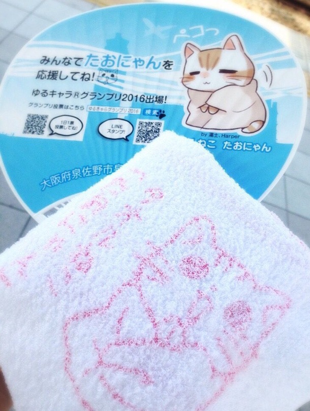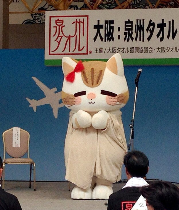 8月28日(毎年8月の最終日曜日)は「泉州タオルの日」ということで、関空夏祭り会場ステージにて、大阪泉州タオルPR時間が設けられ、改めて泉州タオルPR大使たおにゃんが紹介されました。その後、毎年恒例の1万枚もの泉州タオル配布イベントがありました。今年はたおにゃんを載せて頂きました!