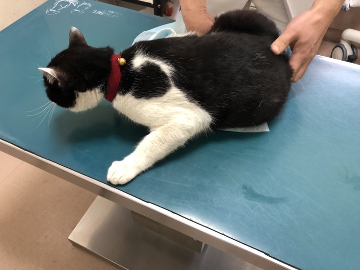 病院に運ばれた日向は、呼吸促拍、抑うつ状態、腰部の疼痛、左後肢の麻痺、骨盤骨折と診断され、かなり衰弱していました。3月19日まで入院治療をした結果、自力で排尿もできるようになり、食欲も戻ってきました。ただ、骨盤を骨折しているため、整復手術が必要で、手術後も麻痺などの後遺症が残る可能性があるとのことでした。