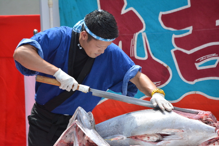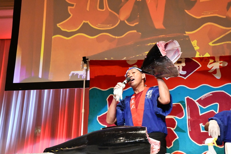 ”生マグロを仕入れてみないか?”のお話があり、そこから鮪達人というマグロ解体ショーの事業を始めて今季で15年目になります。