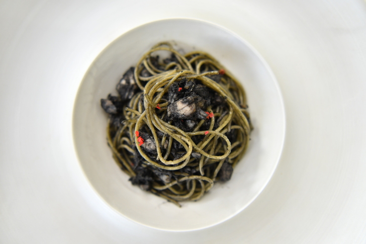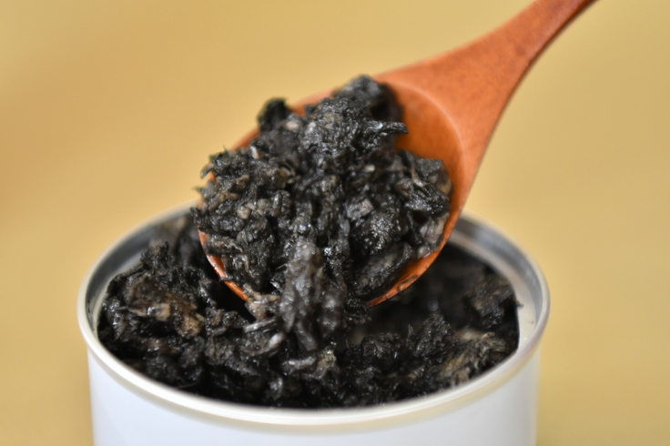 マグロをコクのあるイカ墨で和えた、一味違うマグロの逸品。