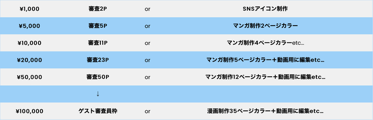 【マンガ制作2ページカラー】or【応募作品に対して審査ができる権利を5ポイント】