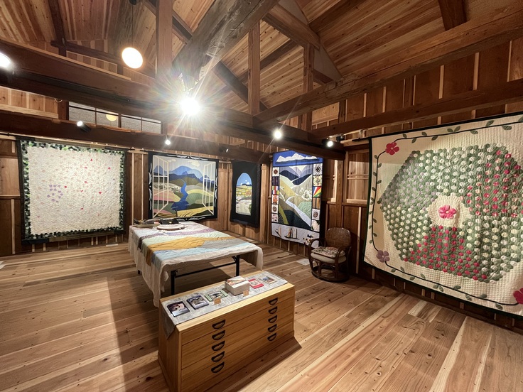 ギャラリーの中です。パッチワークキルトの展示をしています。