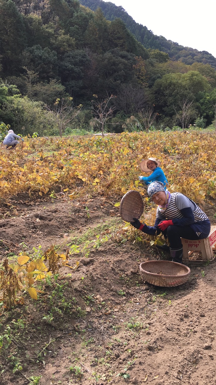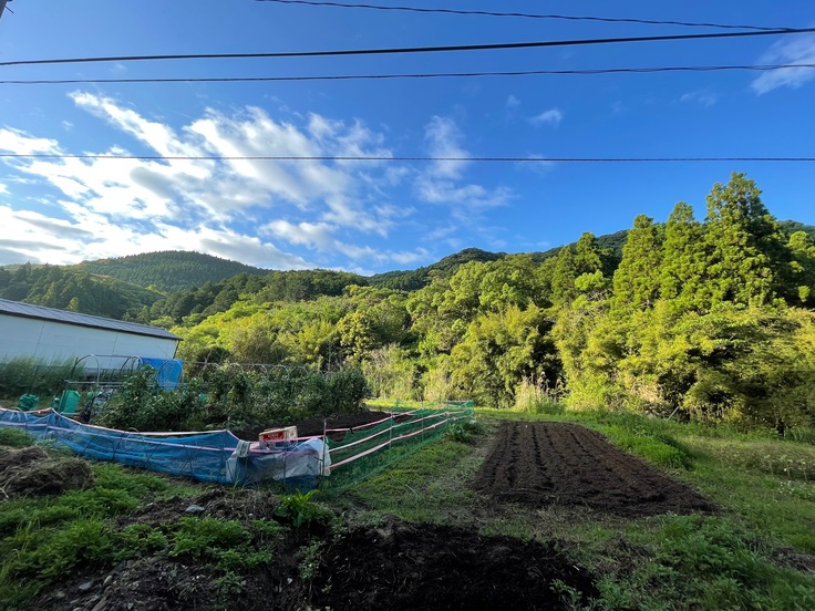 この地域でも原野に戻っている田畑が多く家主さんや、村の方から畑を借りてこちらで始めて7年目になります。鹿児島は季節が早く、春に実るエンドウや空豆は2月過ぎから収穫出来ます。