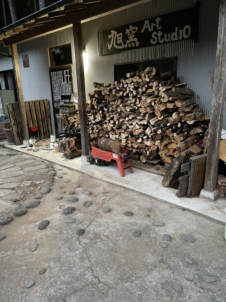 山から下ろしてきて、チェーンソーで切って、薪割り器で割って、積んでを冬中繰り返して絶やさない様にしています。大体、軽トラックで30杯は必要です。