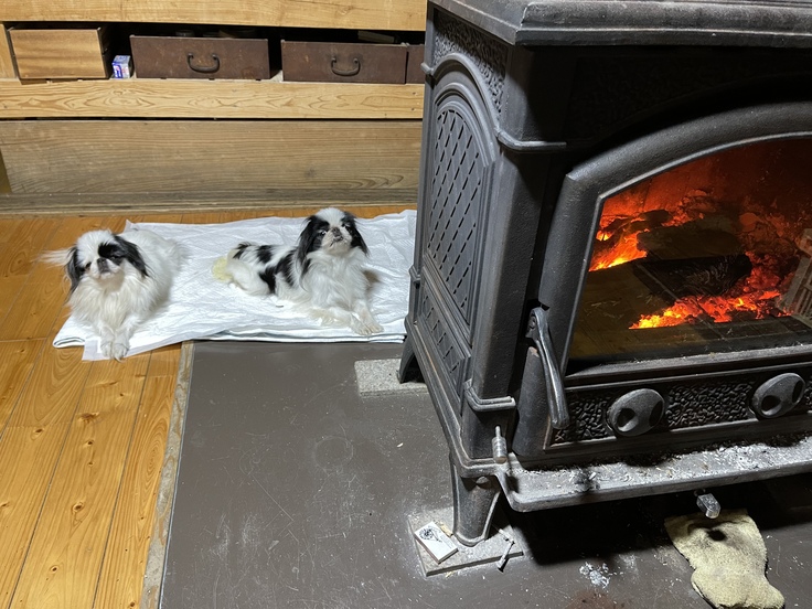 母家とスタジオの暖房は、薪ストーブ