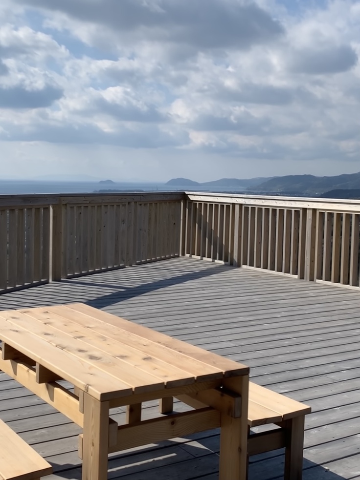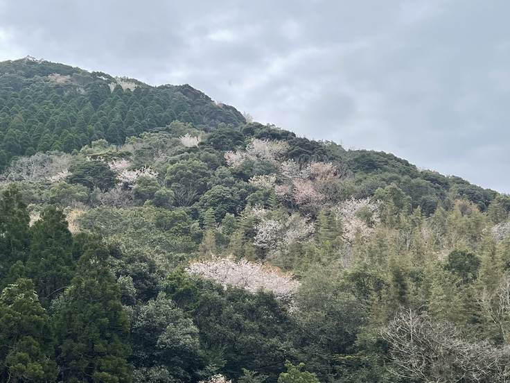 広いテラスから望む山は、季節の移り変わりを感じさせてくれ早春には、山桜が次々に咲き濃い緑の鹿児島の山を彩ってくれます。